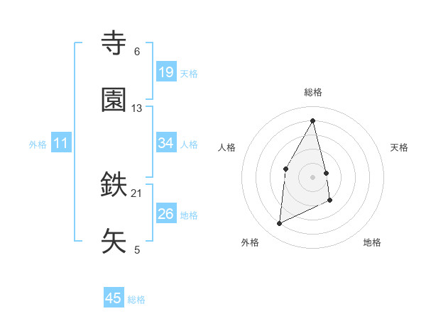 寺園 鉄矢さんを姓名の画数から五運を鑑定