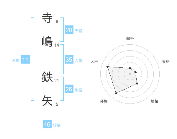 寺嶋 鉄矢さんの地格は26画の2点!