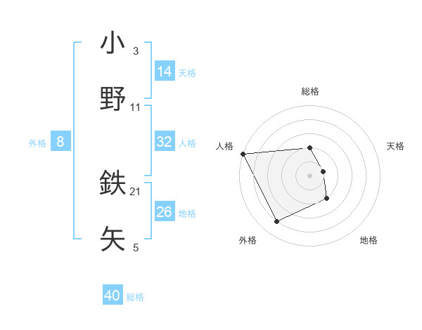 小野 鉄矢さんの人格は32画の5点!