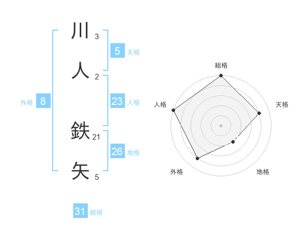 川人 鉄矢さんの総格は31画の5点!