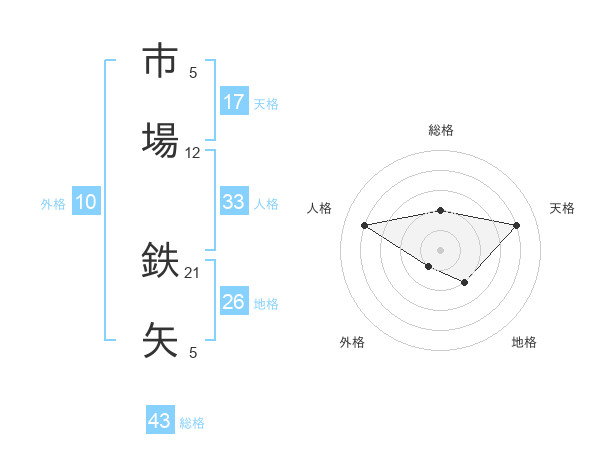 市場 鉄矢さんを姓名の画数から五運を鑑定