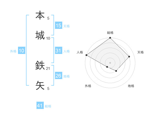 本城 鉄矢さんの総格は41画の5点!