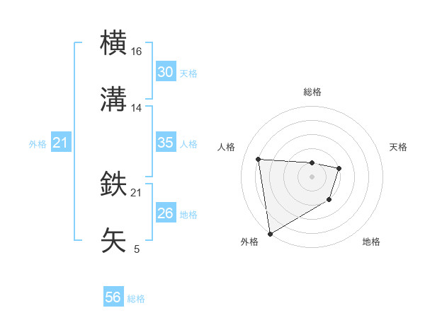 横溝 鉄矢さんの外格は21画の5点!