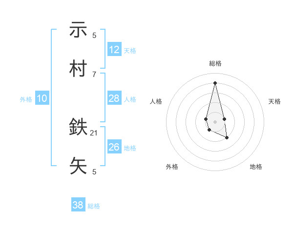 示村 鉄矢さんの総格は38画の4点!