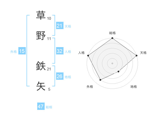 草野 鉄矢さんを姓名の画数から五運を鑑定