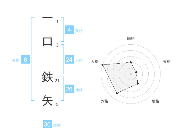 一口 鉄矢さんを姓名の画数から五運を鑑定