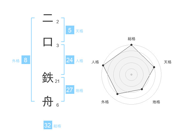 二口 鉄舟さんの総格は32画の5点
