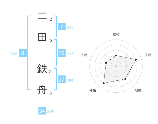二田 鉄舟さんを姓名の画数から五運を鑑定