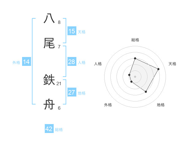 八尾 鉄舟さんの総格は42画の3点!