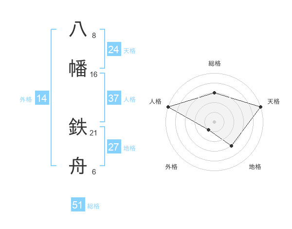 八幡 鉄舟さんの総格は51画の3点!