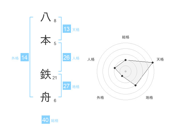 八本 鉄舟さんの天格は13画の5点!