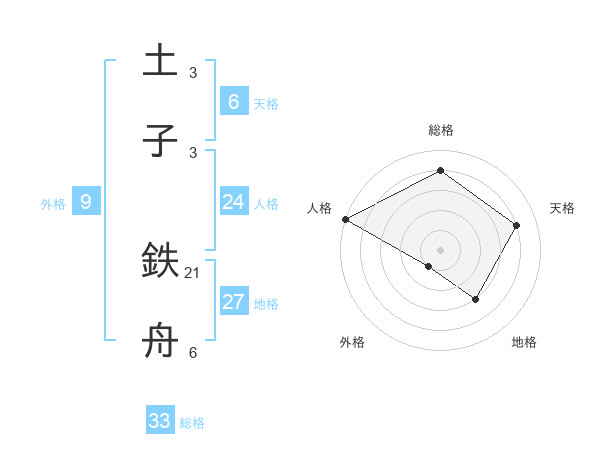 土子 鉄舟さんを姓名の画数から五運を鑑定