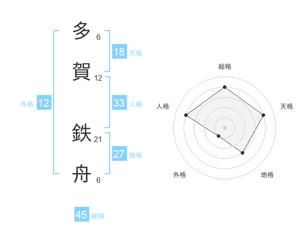 多賀 鉄舟さんを姓名の画数から五運を鑑定