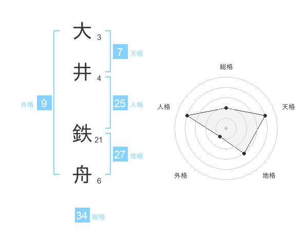 大井 鉄舟さんを姓名の画数から五運を鑑定