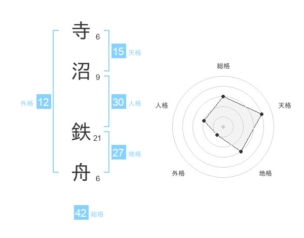 寺沼 鉄舟さんの天格は15画の4点!