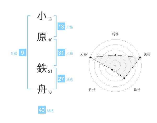 小原 鉄舟さんを姓名の画数から五運を鑑定