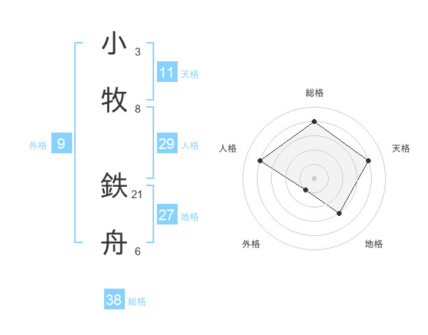 小牧 鉄舟さんの総格は38画の4点!