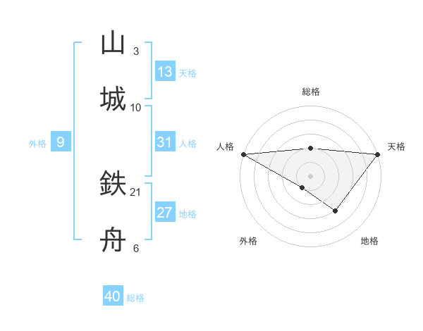山城 鉄舟さんを姓名の画数から五運を鑑定