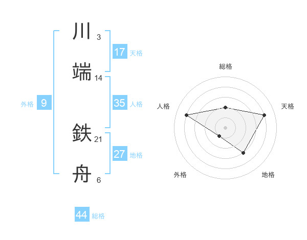 川端 鉄舟さんの天格は17画の4点!