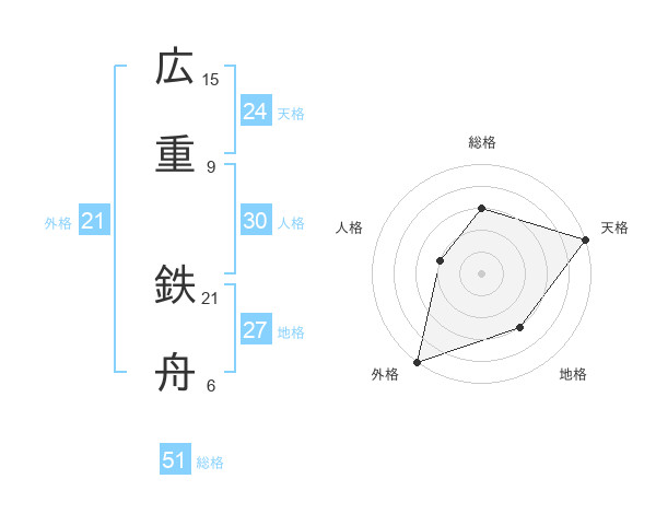 広重 鉄舟さんの総格は51画の3点!