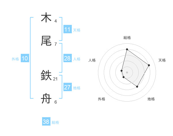 木尾 鉄舟さんの総格は38画の4点!