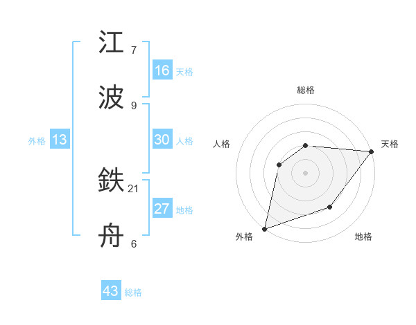 江波 鉄舟さんの総格は43画の2点!