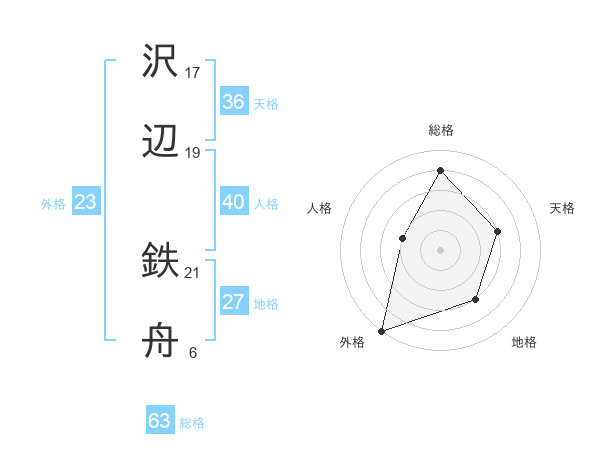 沢辺 鉄舟さんの総格は63画の4点!