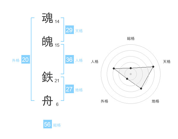 魂魄 鉄舟さんの総格は56画の1点!