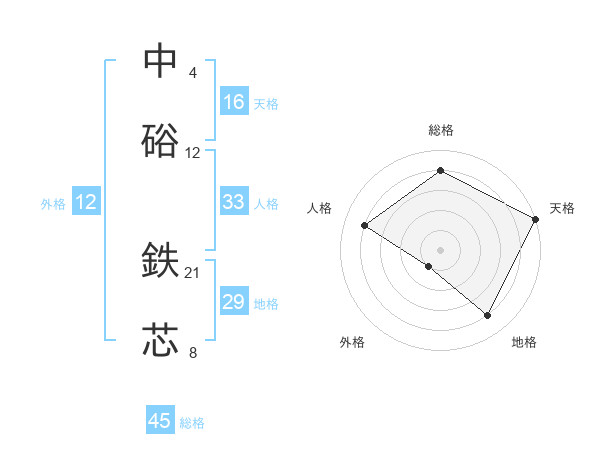 中硲 鉄芯さんを姓名の画数から五運を鑑定