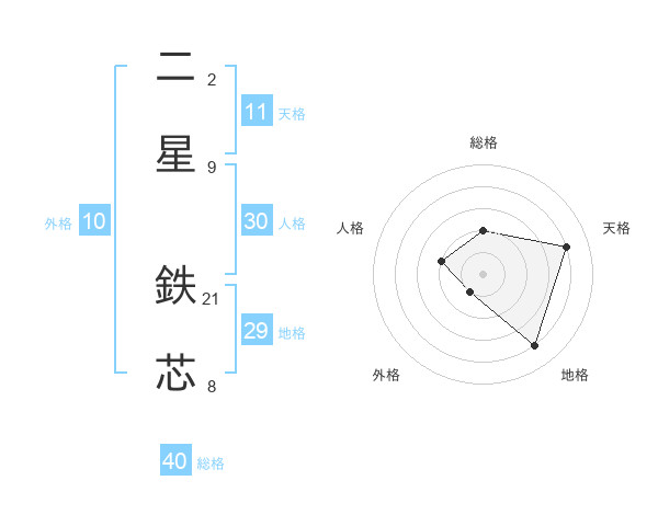 二星 鉄芯さんを姓名の画数から五運を鑑定