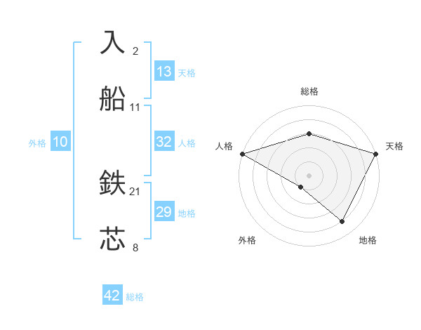 入船 鉄芯さんを姓名の画数から五運を鑑定