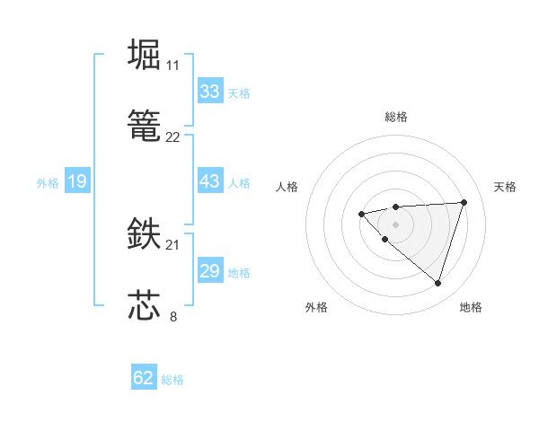 堀篭 鉄芯さんの総格は62画の1点!