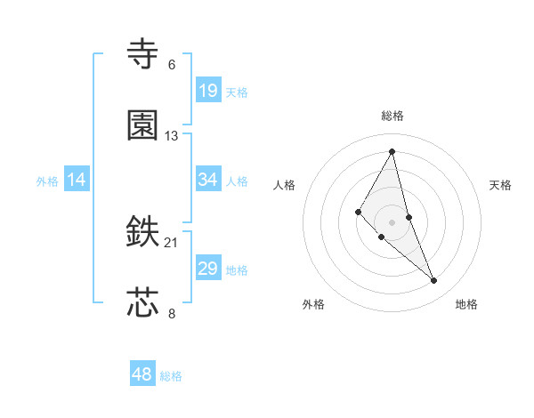 寺園 鉄芯さんを姓名の画数から五運を鑑定