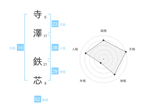 寺澤 鉄芯さんを姓名の画数から五運を鑑定