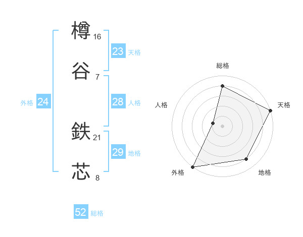樽谷 鉄芯さんを姓名の画数から五運を鑑定