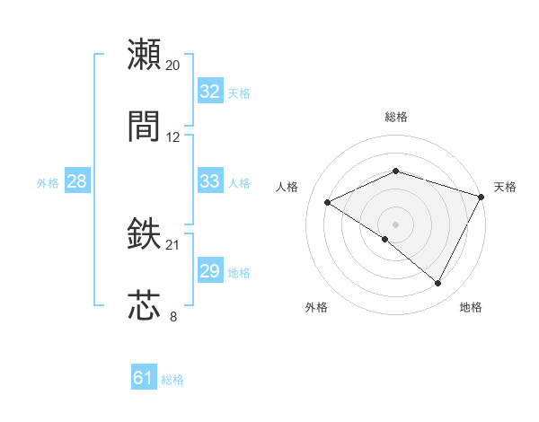 瀬間 鉄芯さんを姓名の画数から五運を鑑定