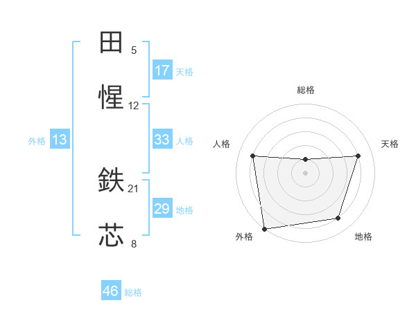 田惺 鉄芯さんの総格は46画の1点!
