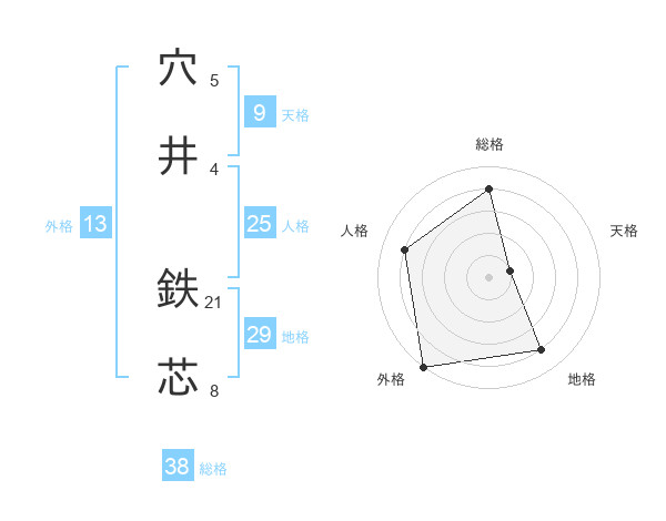 穴井 鉄芯さんの総格は38画の4点!