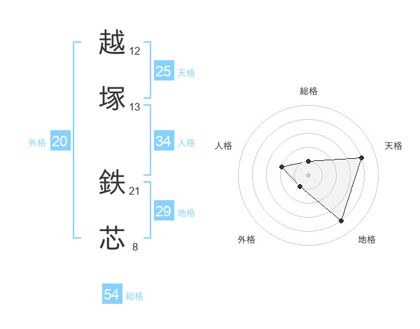 越塚 鉄芯さんの総格は54画の1点!