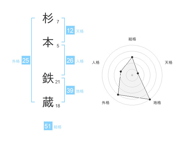 杉本 鉄蔵さんの総格は51画の3点!