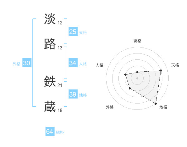 淡路 鉄蔵さんの地格は39画の5点!