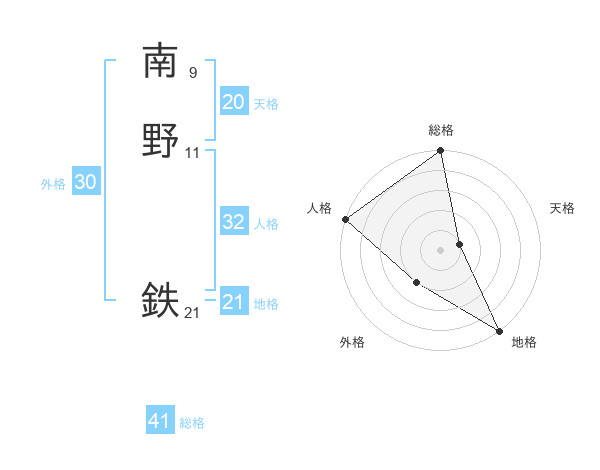 南野 鉄さんの総格は41画の5点!