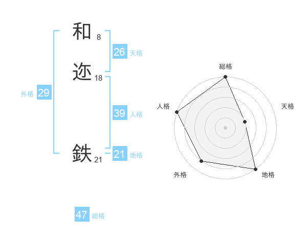 和迩 鉄さんを姓名の画数から五運を鑑定
