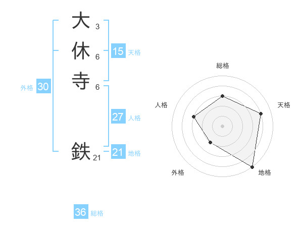 大休寺 鉄さんの総格は36画の3点!