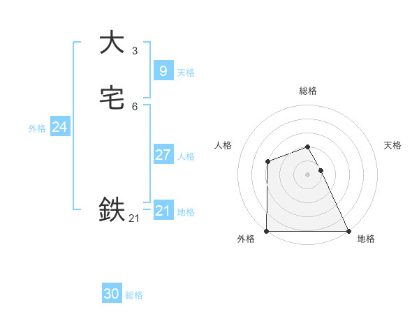 大宅 鉄さんの総格は30画の2点!