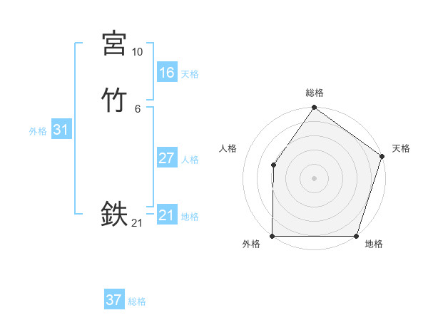 宮竹 鉄さんを姓名の画数から五運を鑑定