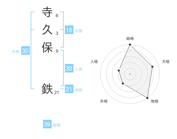 寺久保 鉄さんの総格は39画の5点!
