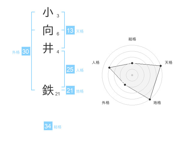 小向井 鉄さんの総格は34画の2点!