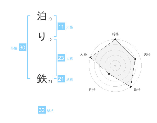 泊り 鉄さんを姓名の画数から五運を鑑定