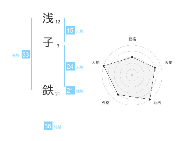 浅子 鉄さんを姓名の画数から五運を鑑定